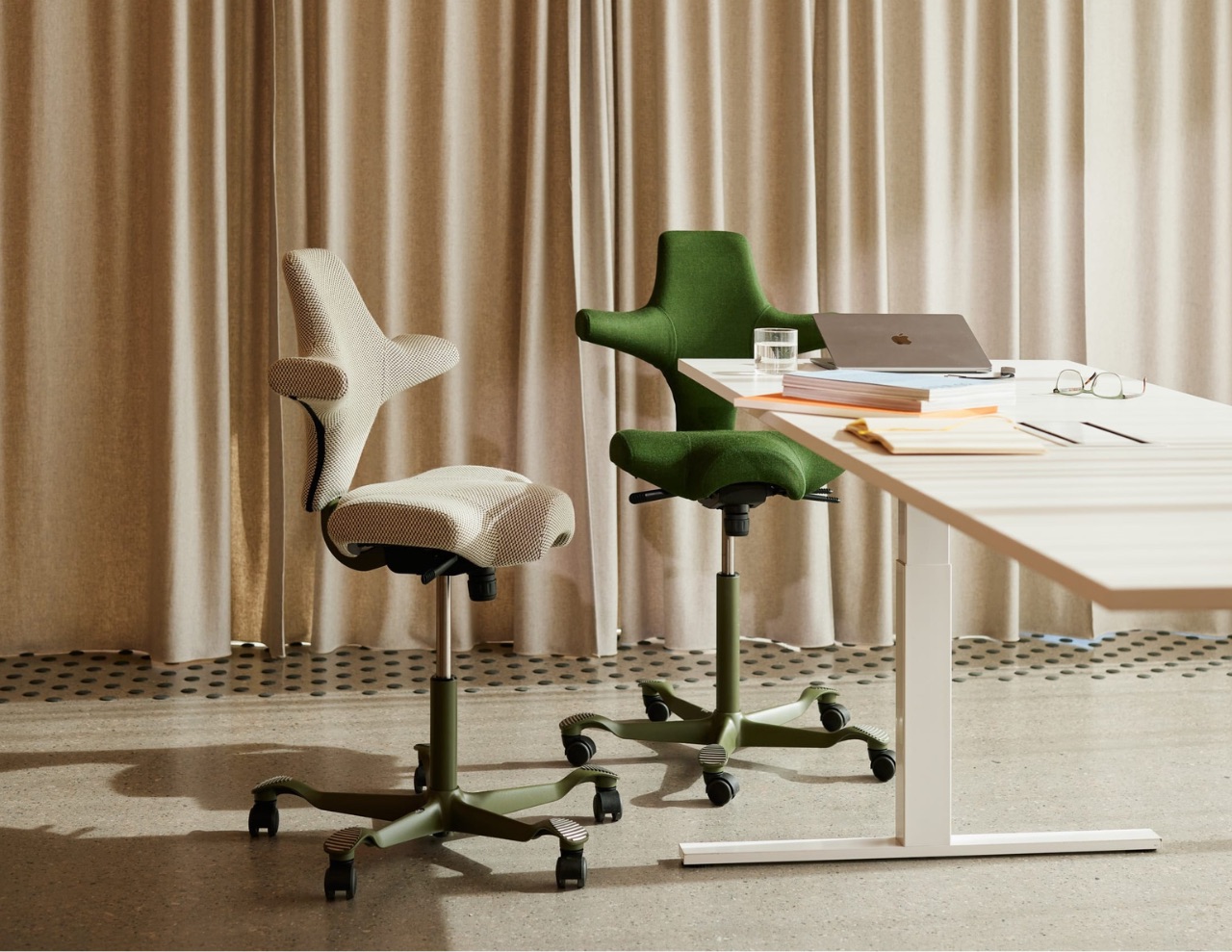 HÅG Capisco is designed with a curved seat reminiscent of a saddle to promote natural upright positioning. The contours open up the hip angle, which in turn extends the spine and opens the chest. The seating experience helps fight fatigue throughout the day, allowing you to perform at the top of your game.