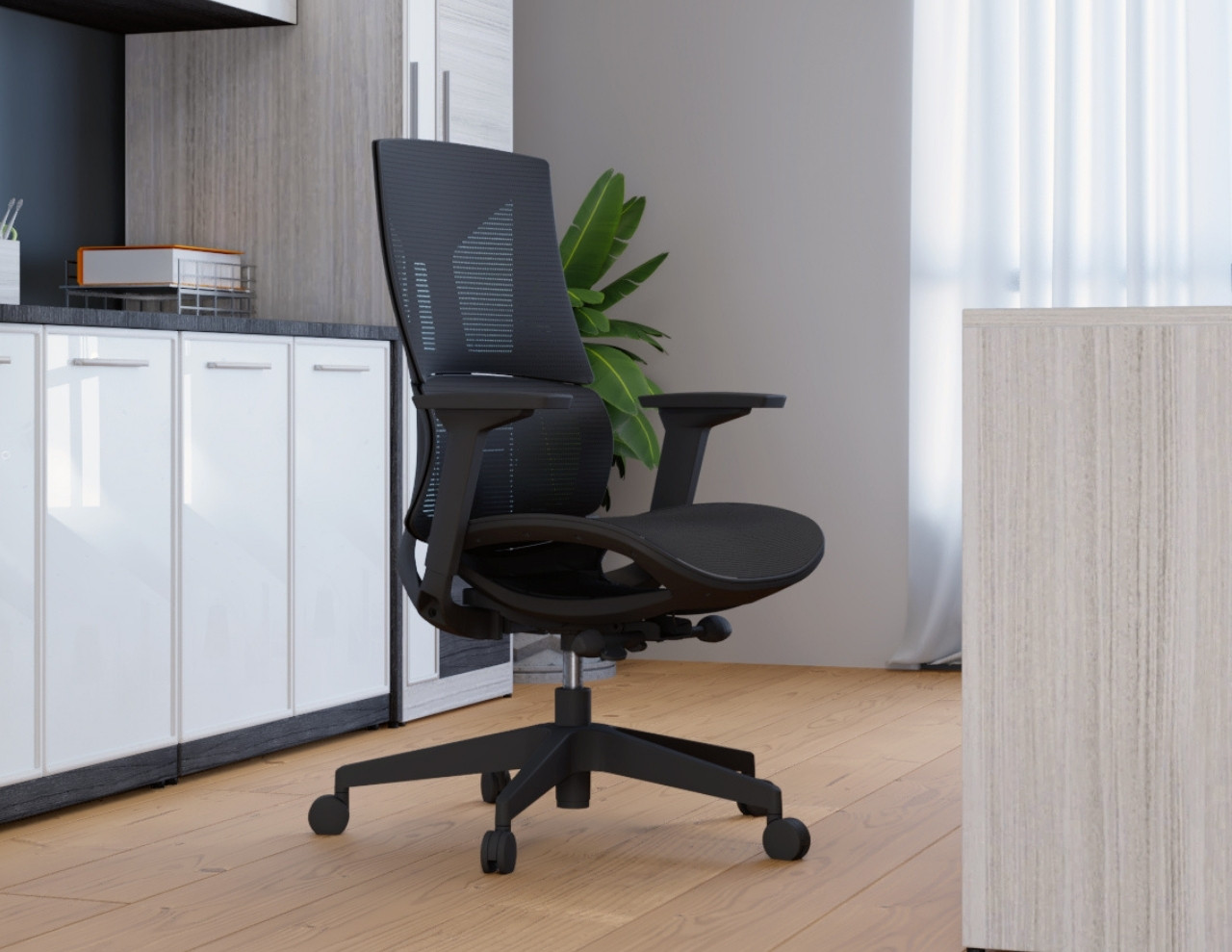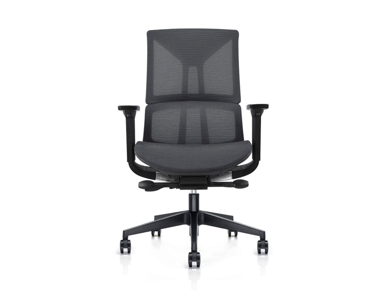 Super ergonomic task chair. Weight control mechanism with lockable in 4 positions + Reclining tension adjustment, seat depth adjustment, forward tilt function, 2-piece back rest with accentuated lumbar support.