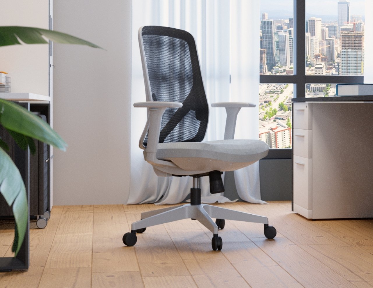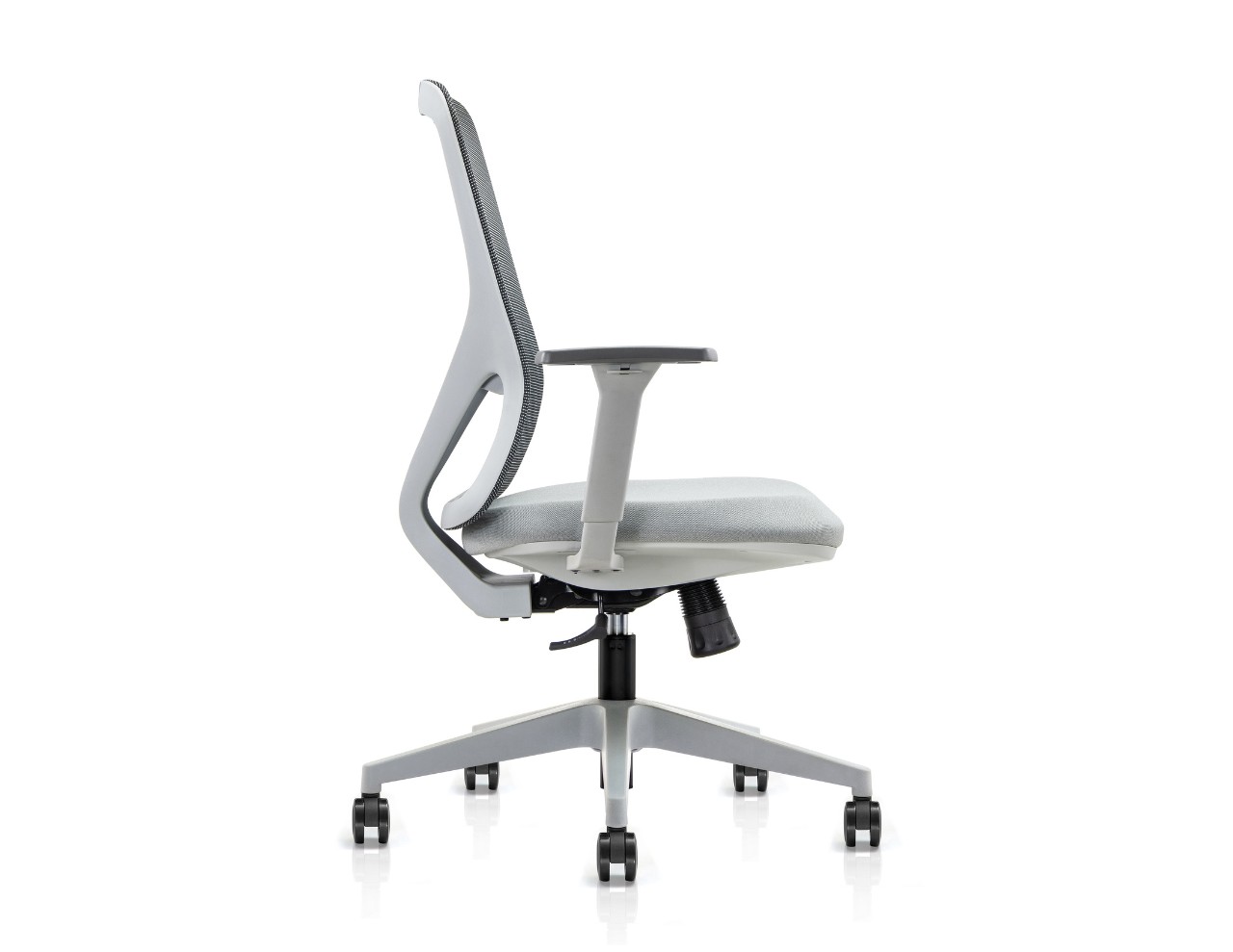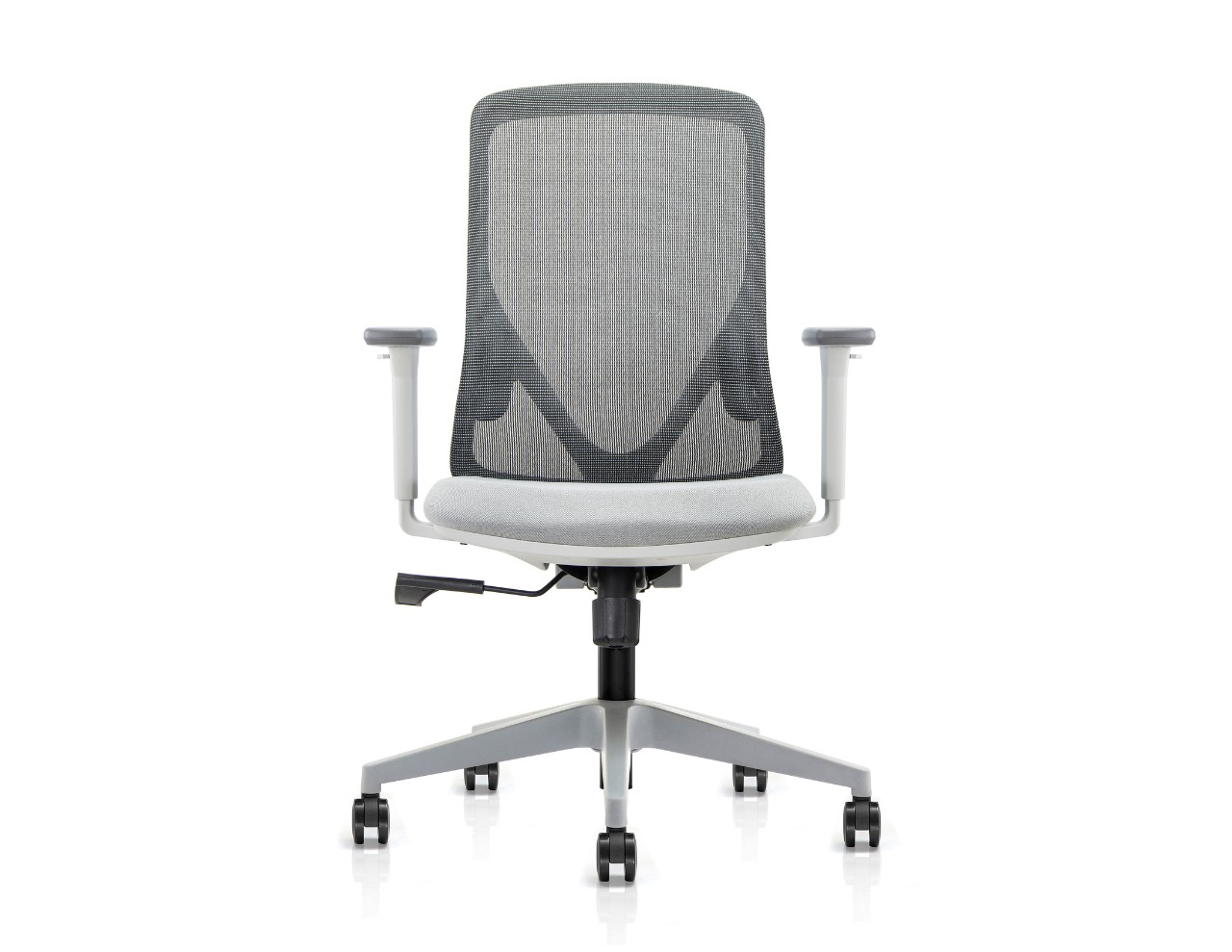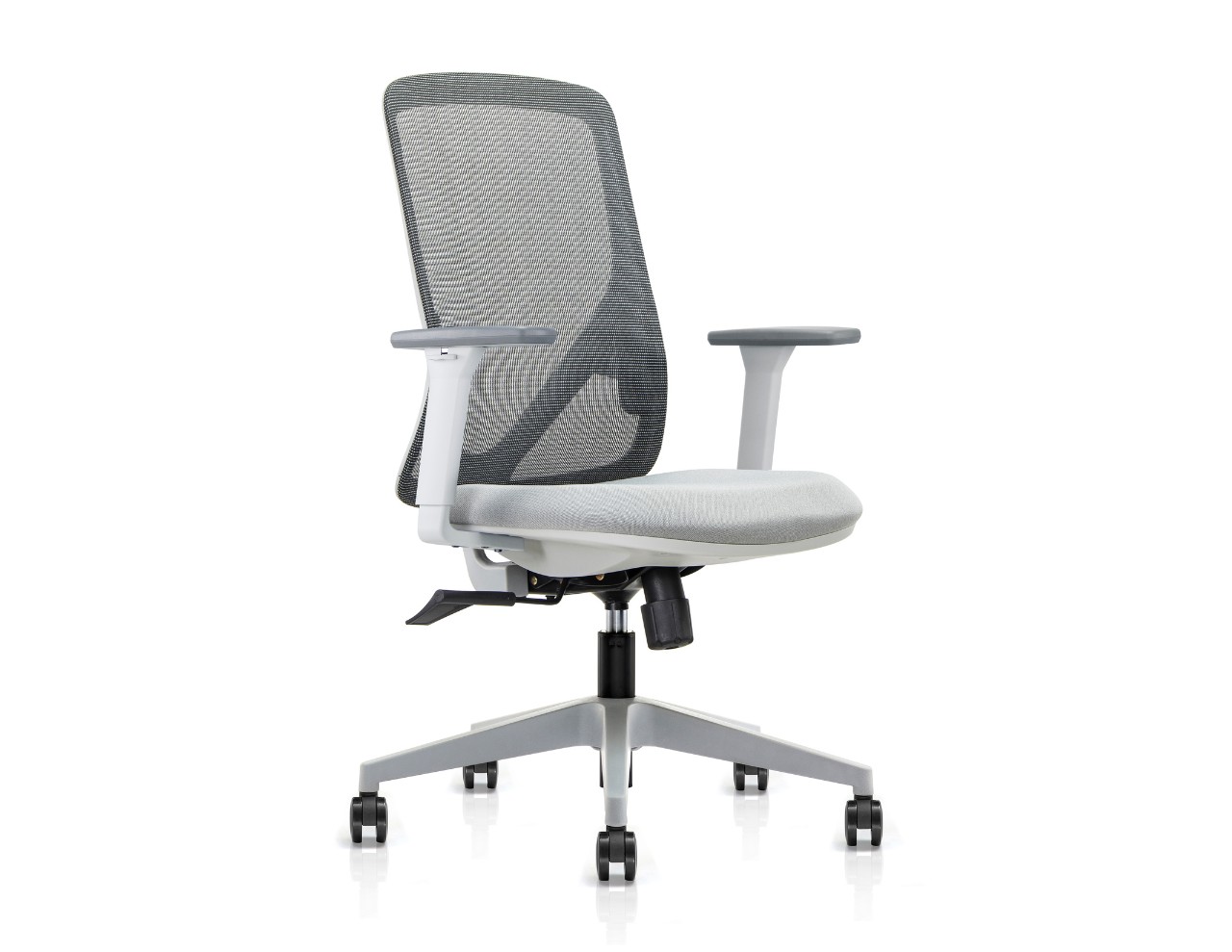 Perché Ergonomic task chair. Grey Nylon Mesh Back. Adjustable lumbar support. Gray 3D adjustable PU cover armrest.